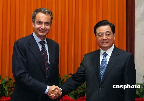 圖:胡錦濤會見西班牙首相薩帕特羅