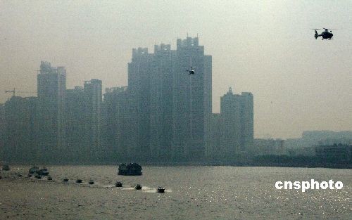 圖:廣州警方進行海空聯(lián)合演練