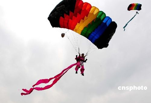 圖:中國空軍跳傘運(yùn)動(dòng)大隊(duì)助興珠海航展