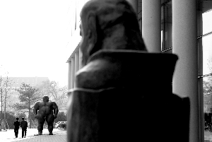 北大校園裸體雕塑與老子雕像相對 引起爭議(圖)