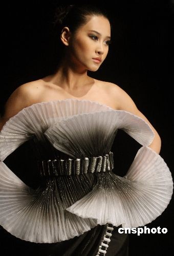 圖:模特國際時(shí)裝周展示最新創(chuàng)意作品