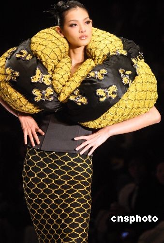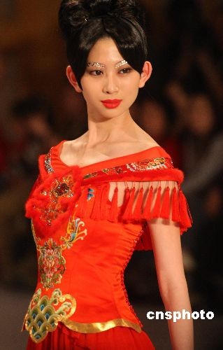 圖:模特中國國際時(shí)裝周上展示新款時(shí)裝