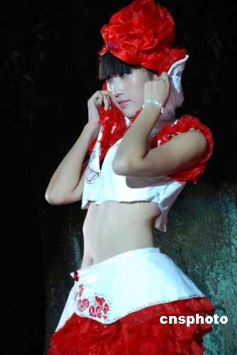 大學(xué)生利用廢舊報(bào)紙制作性感創(chuàng)意時(shí)裝