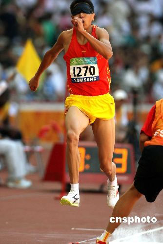 圖:中國盲人選手李端獲三級跳遠(yuǎn)冠軍