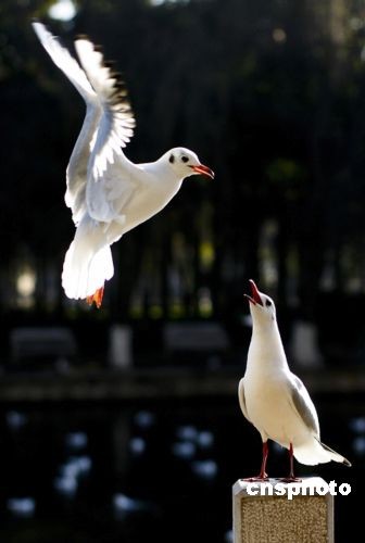 紅嘴鷗成雙嬉戲 提前飛抵昆明越冬