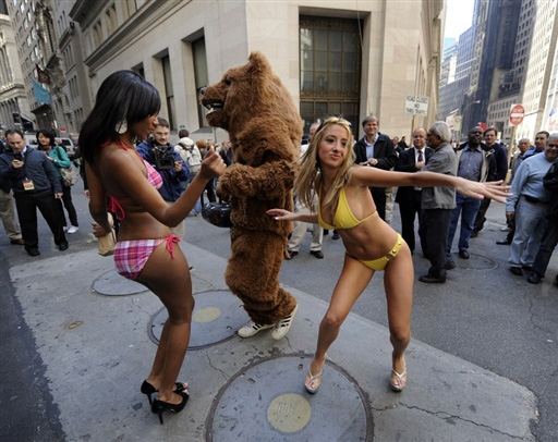 圖:“熊”與美女“熊市”中共舞