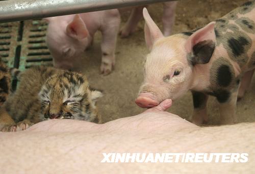 趣圖:豬媽媽哺育小老虎