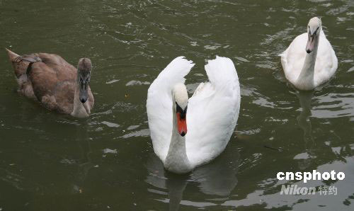 圖:滬野生動(dòng)物園疣鼻天鵝生出罕見灰色后代