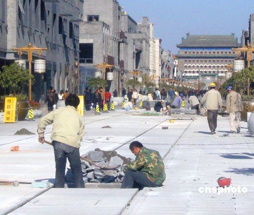 圖:北京前門大街首次進行維修施工