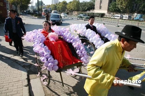 圖:黃包車婚禮亮相南京