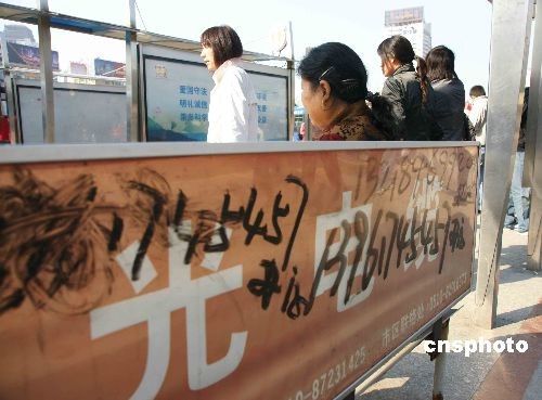 圖:無錫火車站廣場(chǎng)站臺(tái)、公話亭上涂滿小廣告