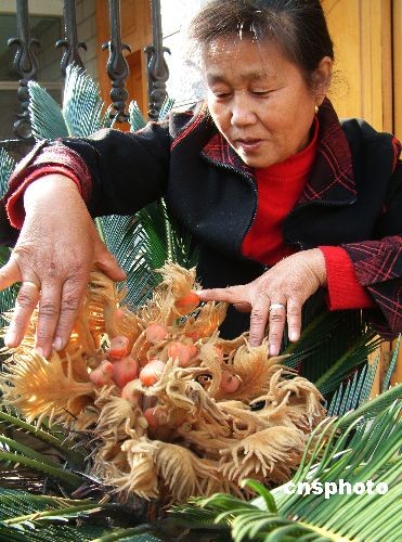 圖:江蘇鐵樹結(jié)果果實(shí)成紅色