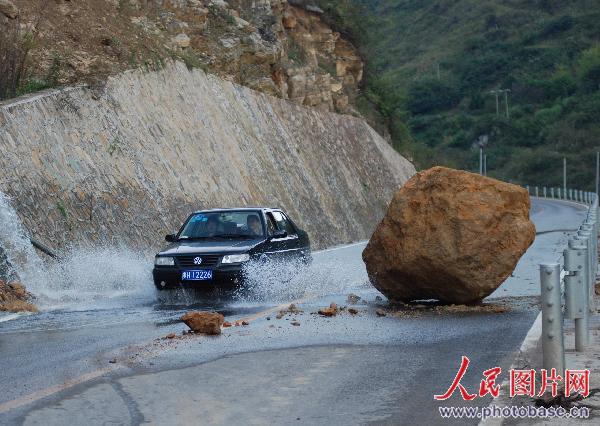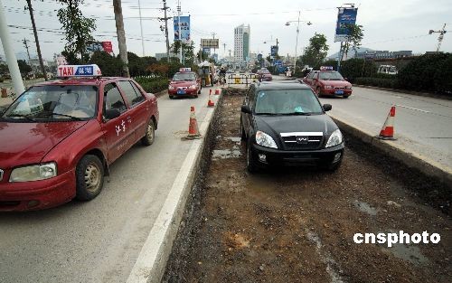 圖:維修警示牌被盜 轎車開進(jìn)坑內(nèi)被困