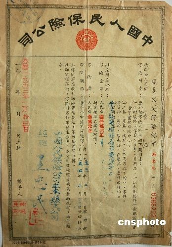 圖:塵封半個世紀(jì)的保險單現(xiàn)身山東濱州