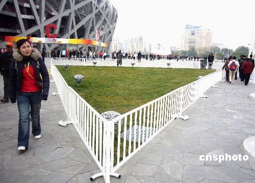 圖:“鳥巢”廣場綠地新增護(hù)欄