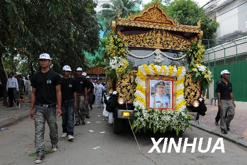 圖:柬埔寨國家警察總監(jiān)遺體被運(yùn)往故鄉(xiāng)