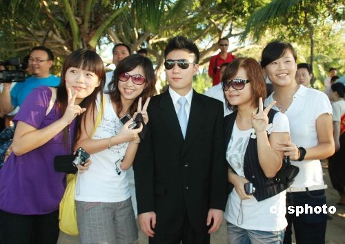 圖:帥氣李小鵬三亞受美女追捧