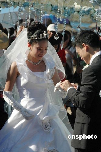 圖:楊威楊云互為對方佩戴新婚戒指