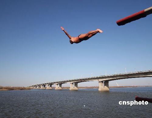 圖:哈爾濱冬泳健兒“立冬”跳水