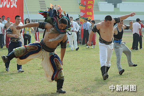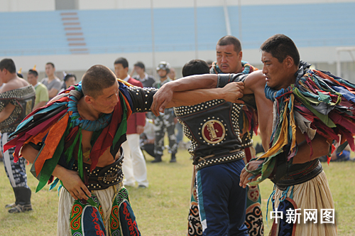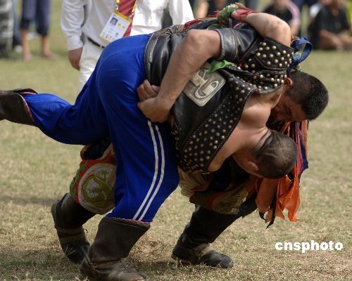 組圖:農(nóng)運(yùn)會"搏克"摔跤緊張激烈(3)