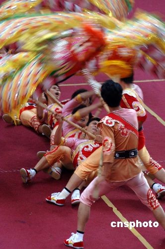 圖:農(nóng)運(yùn)會舞龍舞獅比賽出神入化