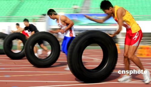 圖:農(nóng)運(yùn)會的推輪胎賽跑