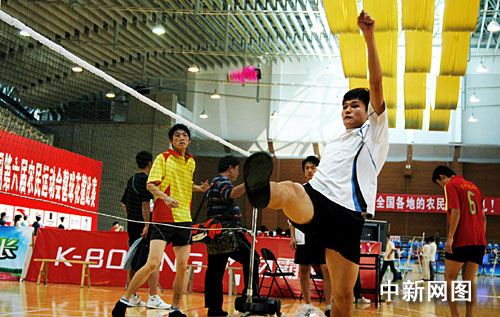圖:農(nóng)運(yùn)會毽球花毽比賽 選手騰空展絕技