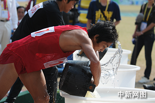 圖:農(nóng)運會選手“抗旱提水”忙