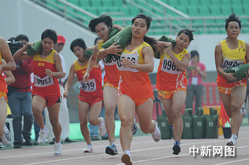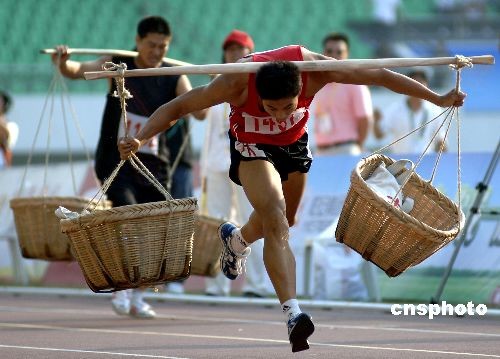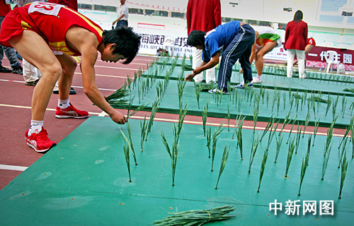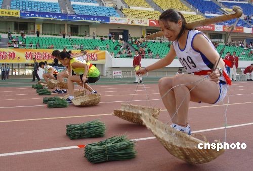 圖:農(nóng)運會賽場上運動員“忙運糧”