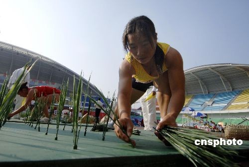 圖:農(nóng)運會插秧比賽技巧多