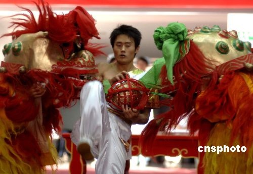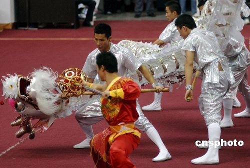 圖:第六屆農(nóng)運(yùn)會(huì)上演精彩紛呈的舞獅賽