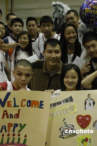 圖:易建聯(lián)訪(fǎng)紐約受數(shù)百小球迷歡迎