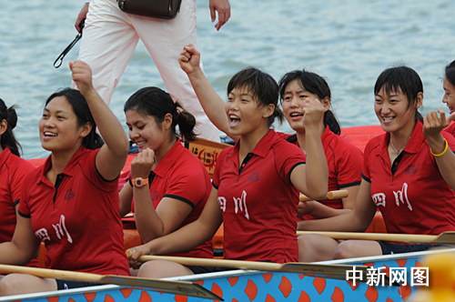 組圖:農(nóng)運(yùn)會(huì)龍舟競(jìng)速 四川女隊(duì)笑容燦爛