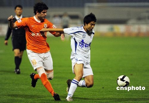 圖:中超賽場山東魯能1比1言和天津康師傅