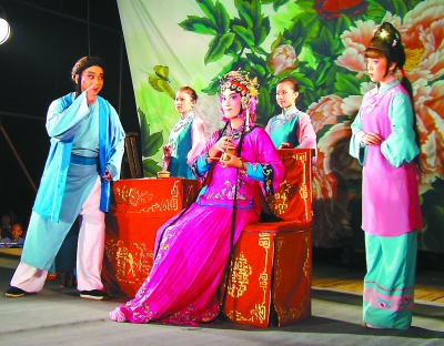 10月13日晚,由福建省閩劇團(tuán),倉(cāng)山區(qū)委宣傳部、區(qū)旅游局、區(qū)傳統(tǒng)文化促進(jìn)會(huì)聯(lián)合舉辦的高雅文化進(jìn)社區(qū)活動(dòng),在倉(cāng)山區(qū)下渡街道舉行。福建省閩劇團(tuán)獻(xiàn)上了《貽順哥燭蒂》、《戰(zhàn)金山》、《甘國(guó)寶》等經(jīng)典閩劇折子戲,吸引了1000多名閩劇愛(ài)好者觀看。圖為演員們?cè)诒硌蓍}劇《甘國(guó)寶》。(王鳳山 王光華 攝)
