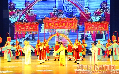晚會的節(jié)目豐富多彩,緊隨潮州大鑼鼓之后的舞蹈《閨繡》,深刻而生動地演繹了潮州繡女的心靈手巧和婀娜多姿。潮州弦詩樂《浪淘沙》,讓觀眾領(lǐng)略到潮州音樂的細膩和悠婉;潮州細樂《湘橋夜話》,把工夫茶茶藝表演恰到好處地融入其中,讓悠揚潮樂中飄蕩著裊裊茶香;男女聲對唱《鳳凰山茶歌》,把畬族青年男女的熱情奔放的性情淋漓盡致地表達出來;潮州歌冊《潮州八景新唱》,則讓“老八景”唱出“新味道”。而潮曲表演《陳三五娘回潮州》,巧妙地讓陳三五娘這對古代眷侶回到“娘家”,一路行來處處感受著今日潮州城市面貌的深刻變化。在剛剛啟用的市文化藝術(shù)中心大劇院這個舞臺上,在五光十色的霓虹燈下,鄭舜英、唐龍通、許佳娜等潮劇名角和潮州市各演藝團體用精心排練的節(jié)目,把晚會的氣氛一次次推向高潮,也贏得了現(xiàn)場觀眾一陣陣熱烈的掌聲。(吳杰文)
