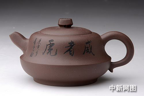 創(chuàng)新是紫砂壺的靈魂,此壺中,中國(guó)的“國(guó)”字里的“王”就是取虎前額上的花紋構(gòu)成,虎是森林之王,中國(guó)人巧妙地以它前額上的花紋作為一個(gè)漢字,而作者更巧妙地把它引用在其作品之中,以應(yīng)“虎”題。