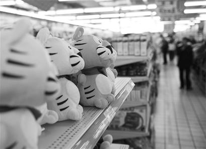 記者走訪廈門(mén)各大賣(mài)場(chǎng)被告知:今年凡是跟老虎有關(guān)的都很好賣(mài),不過(guò),銷(xiāo)量不及網(wǎng)絡(luò)!岸际悄贻p人買(mǎi),他們?cè)诰W(wǎng)上能找到更便宜、種類(lèi)更多的老虎!币晃毁u(mài)場(chǎng)人員說(shuō)!