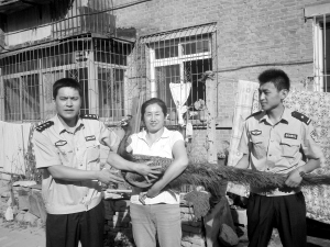 15時(shí)50分左右,丹東市公安局振興公安分局桃源派出所民警呂傳琦和曹智趕到現(xiàn)場(chǎng),呂女士將孔雀交給民警。