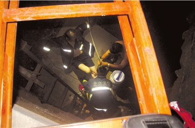 香山消防中隊(duì)消防員到場后,在塌陷坑上方搭建安全支架。幾名消防員下到坑底,為楊先生系好安全繩索,其中一人還脫下衣服為赤膊的楊先生披上,隨后順利將其拉到地面。已等在一旁的120急救人員迅速將楊先生送往醫(yī)院。