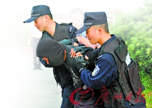 “快,注意,嫌疑犯到了!眲偺萝(chē)尚未站穩(wěn)的警察對(duì)圍上來(lái)的戰(zhàn)友說(shuō)。