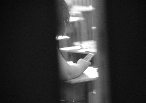 昨日下午,一名考生在考場擺弄手機。記者發(fā)現(xiàn),該考場很多同學有作弊行為。昨日,北京電大人行教學點發(fā)生嚴重舞弊事件。