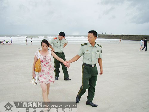 7月17日,一對夫婦從柳州到北海銀灘旅游。其間,丈夫接了一個(gè)陌生女子的電話,妻子傷心不已,竟欲投海自盡,幸被景區(qū)救生隊(duì)員救起。