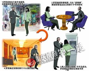 “哎呀,太麻煩了,還是回酒店讓我秘書弄算了!绷_某提議。于是,張黎又跟著羅某回到酒店。