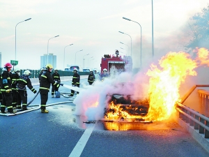 消防員趕到時,火勢正處于猛烈燃燒階段,就在大家準(zhǔn)備撲救之時,捷達(dá)車的前輪發(fā)生爆炸,鋼圈被震至橋下的河中,緊接著,油箱又發(fā)生了爆炸,將車門玻璃震碎,泄漏的油著火將整輛車包圍。