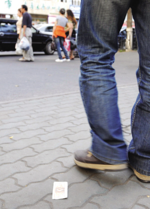 公園小徑兩旁的椅子上坐滿了休息、聊天的市民。聊天間隙,有人指向那一角錢,顯然,他們發(fā)現(xiàn)了。不過記者等了半天,也不見有人行動(dòng)。很快有一過路人發(fā)現(xiàn)了這一角錢,瞬間,他左右環(huán)顧,然后走開。第二個(gè)路過的是個(gè)小姑娘,她腳踩在人民幣上走了過去,還回頭看了一眼地上的毛錢。接著走過的是一位老者,顯然他也發(fā)現(xiàn)了這一角錢,老者用目光掃視周圍的人,見無人理會(huì),老者停頓了一下,繞開走了過去。