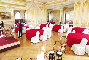 慈善晚宴的會場沒有想象中豪華,一位與會者介紹,會場和一些五星級的會場比較起來甚至稱得上“簡陋”,座椅等設(shè)施也一般,但現(xiàn)場風(fēng)格較為獨(dú)特,頗有歐洲中世紀(jì)的復(fù)古風(fēng),現(xiàn)場一共有7張桌子,每個(gè)桌子8個(gè)椅子,房頂上是有繪畫的穹頂。除了現(xiàn)場眾多的富豪外,會場最引人注目的就是雕塑了,有與會者看見其中一尊雕塑是“波蘭制造”,顯示會場與眾不同的貴族范兒。