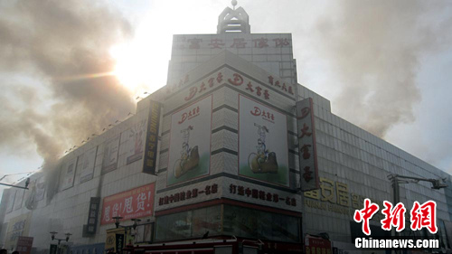 商業(yè)大廈的一名商鋪老板告訴記者,火勢(shì)最先是從一樓小百貨燒起來的!安恢朗裁丛颍鋈痪兔捌馃焷,接著就看見了明火,大家便紛紛往外逃跑。”該人說,當(dāng)時(shí)就有人撥打電話報(bào)警,隨后他們便在樓下開始叫喊,不時(shí)看見有人從樓內(nèi)跑出。