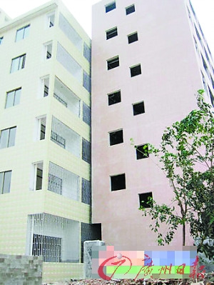 “西安那個(gè)‘樓擠擠’畢竟還有近一米的間距,握個(gè)手還要彎腰伸手才夠得著,可在我們這里,這兩棟樓的間距估計(jì)還不到10厘米,一對(duì)情侶站在兩棟樓的陽臺(tái)上不用彎腰就可以臉貼臉地?fù)肀Я!”這位爆料網(wǎng)友稱,繼“樓倒倒”、“樓歪歪”后,又出現(xiàn)了“樓抱抱”的新景觀。