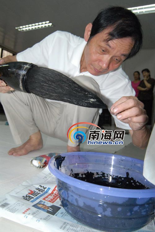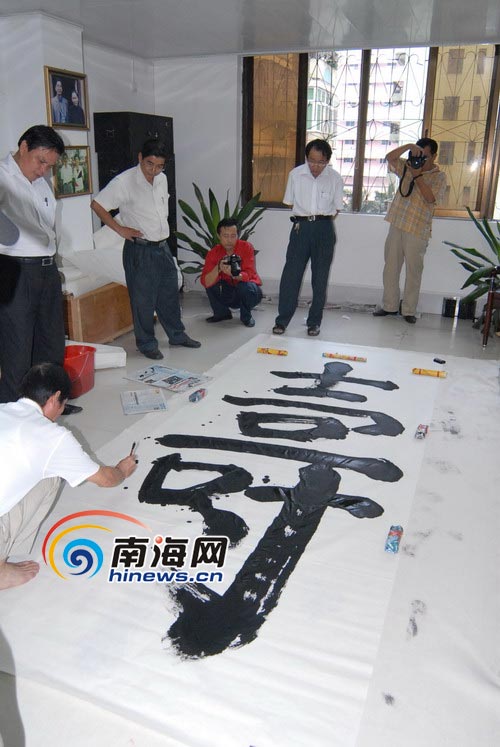 重陽節(jié)前夕,儋州書市的68歲書法家余廣,應海口市文藝聯(lián)合會邀請,在海口市文聯(lián)展示自己的書法,寫出了一個高3.7米,寬為1.47米的“壽”字。并稱該“壽”字為海南之最,以此字祝全國老年人福如東海、壽比南山。